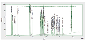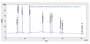 - Oven Temperature Program – 40°C hold for 3 min Then Rise up to 185 deg final hold 30 min