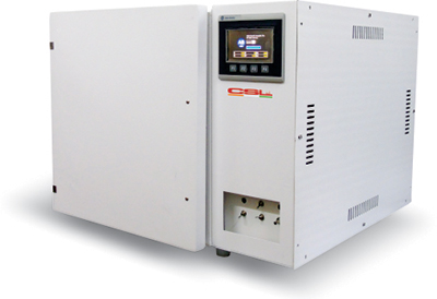 Chemtron GC2045 Gas Chromatograph system has been designed using PLC control system. System consists of precision EPC flow control, sampler, separation system, column oven, detectors, and temperature control, detector and chromatography workstation. Controls and parameter setting established by the 4” Color Touch Screen display with real-time display of all parameters setting value and actual value.